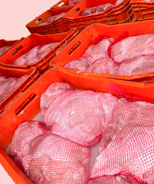 Diseñado para frutas y vegetales de mayor peso o volumen. Mantiene firmeza, soporte y una excelente presentación en productos como naranja, limón, papa, chile morrón, cebolla y más.